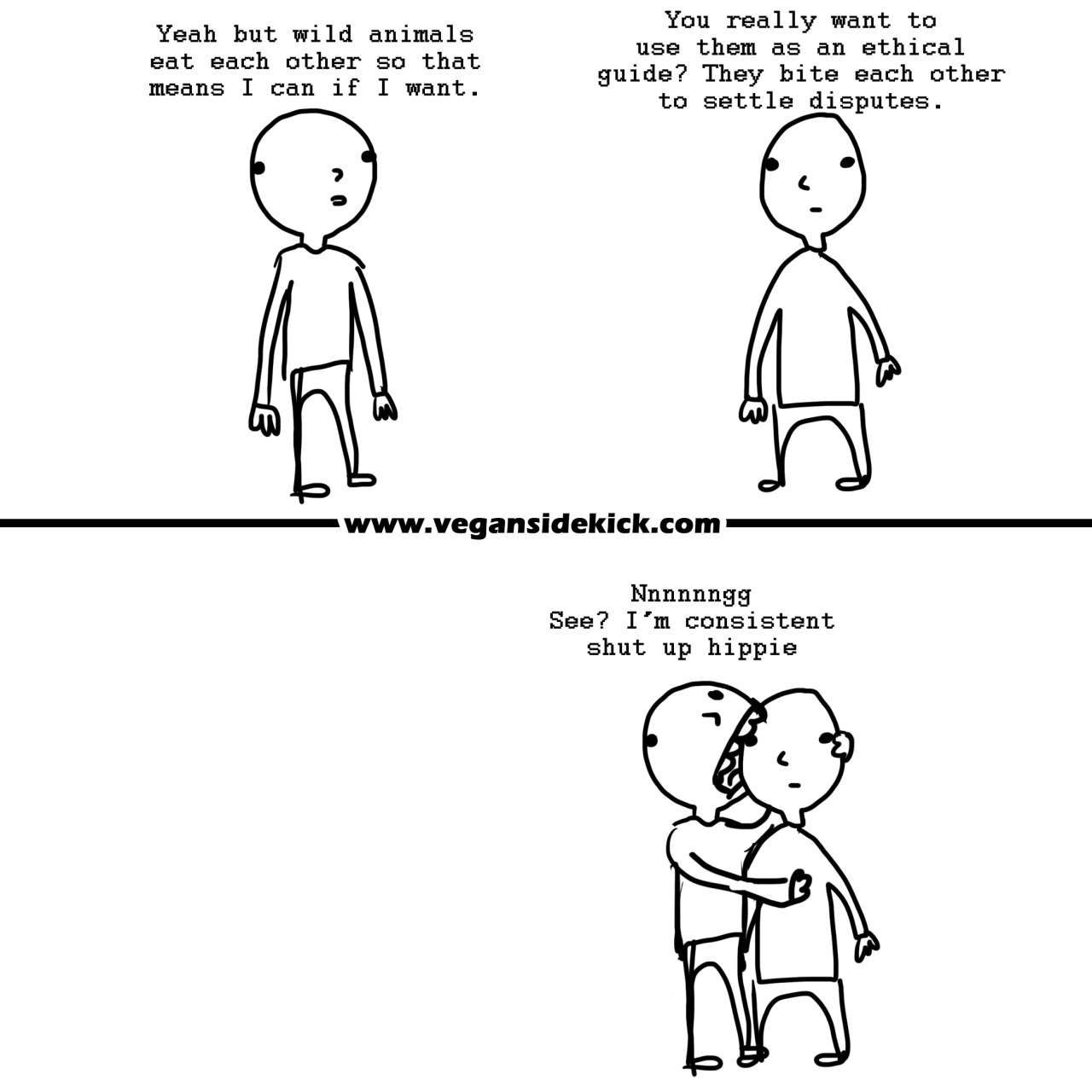 It is an interesting philosophical question that you're posing here +Kitteh Equaliteh, and I did not mean to be coy before in my response; I earnestly thought I was answering your question. In essence, you're asking why it is that I am arguing against humans killing other animals, but why I'm not concerned about non-humans killing other animals, right?