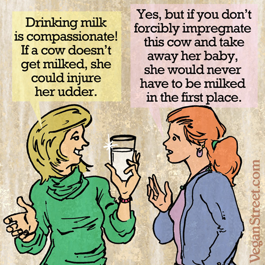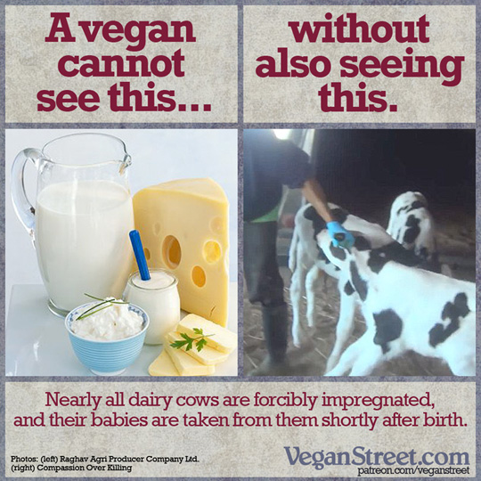 If you will bear with me a moment, let's consider the "trade" we're forcing on these beings, and I'll do so assuming the best possible environment for the life of a dairy cow (as the vast majority have a great deal more suffering involved then what I'm about to cover):