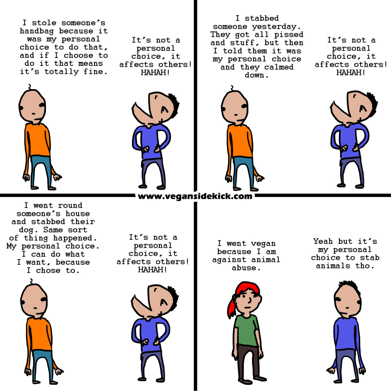 Eating meat is a personal choice just like being vegan is a personal choice, so everyone should just live and let live.