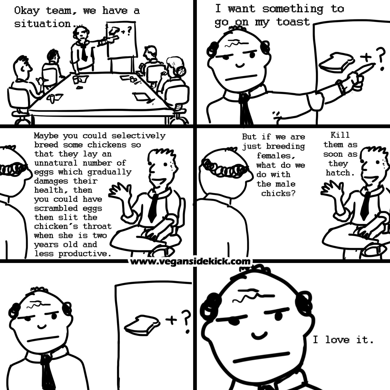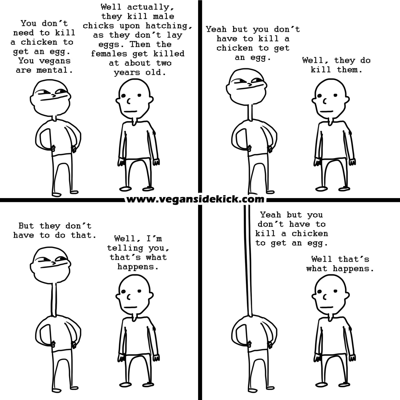 Withal, +Chicken Little, it's hard for me to see how eggs can be thought of as anything but cruel, you know?