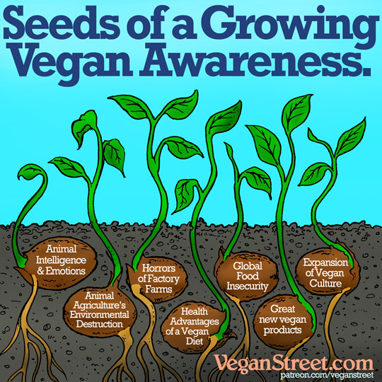 "Vegan restaurants, cafes and stores are popping up all over my city and around the world. More vegan substitutes are available than ever before. Animal rights awareness is growing rapidly. Mainstream media is starting to promote veganism."
