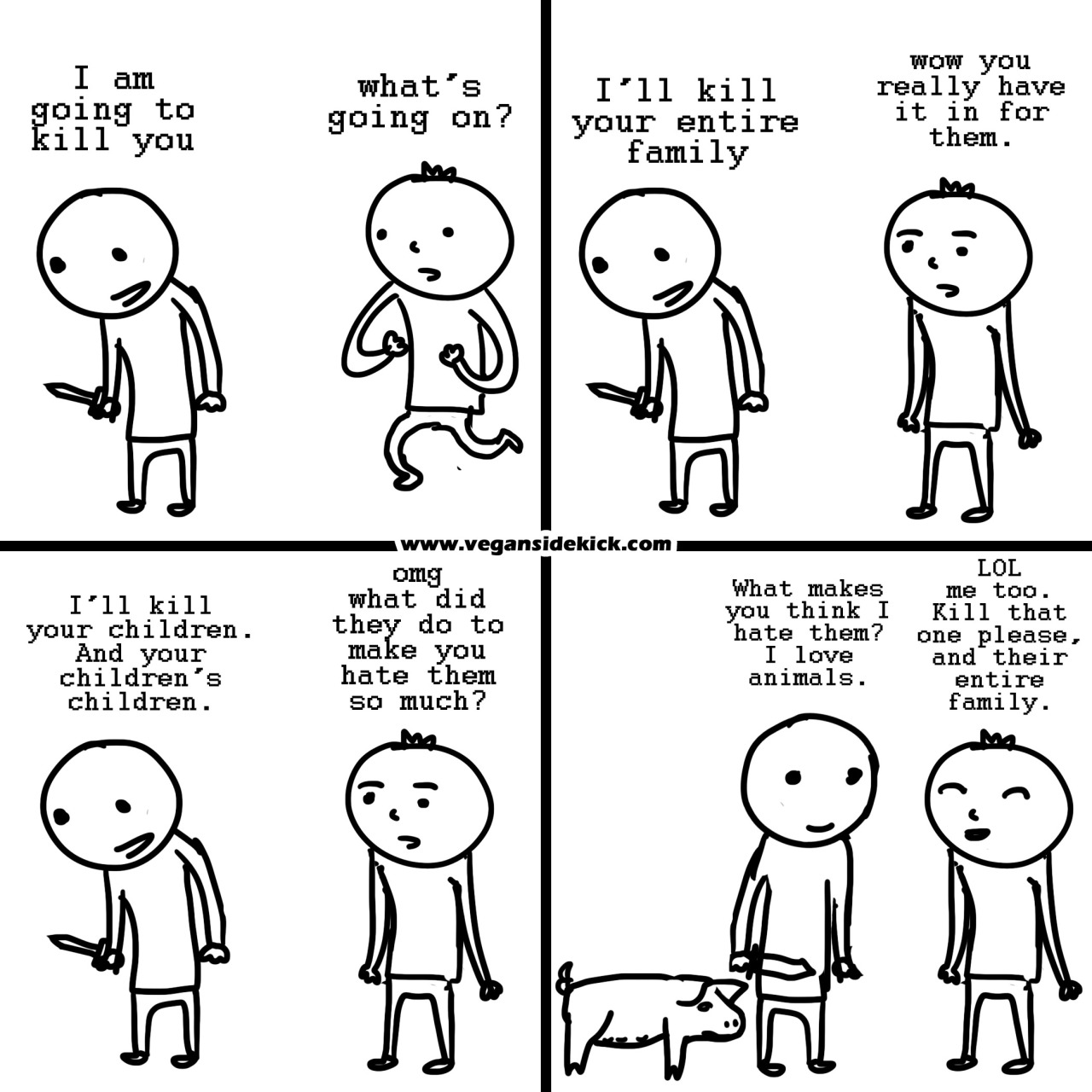 I love animals enough to meet their needs while they are alive, but I also understand they sometimes must be killed in order to meet my needs. So there is no conflict between loving animals and killing them.